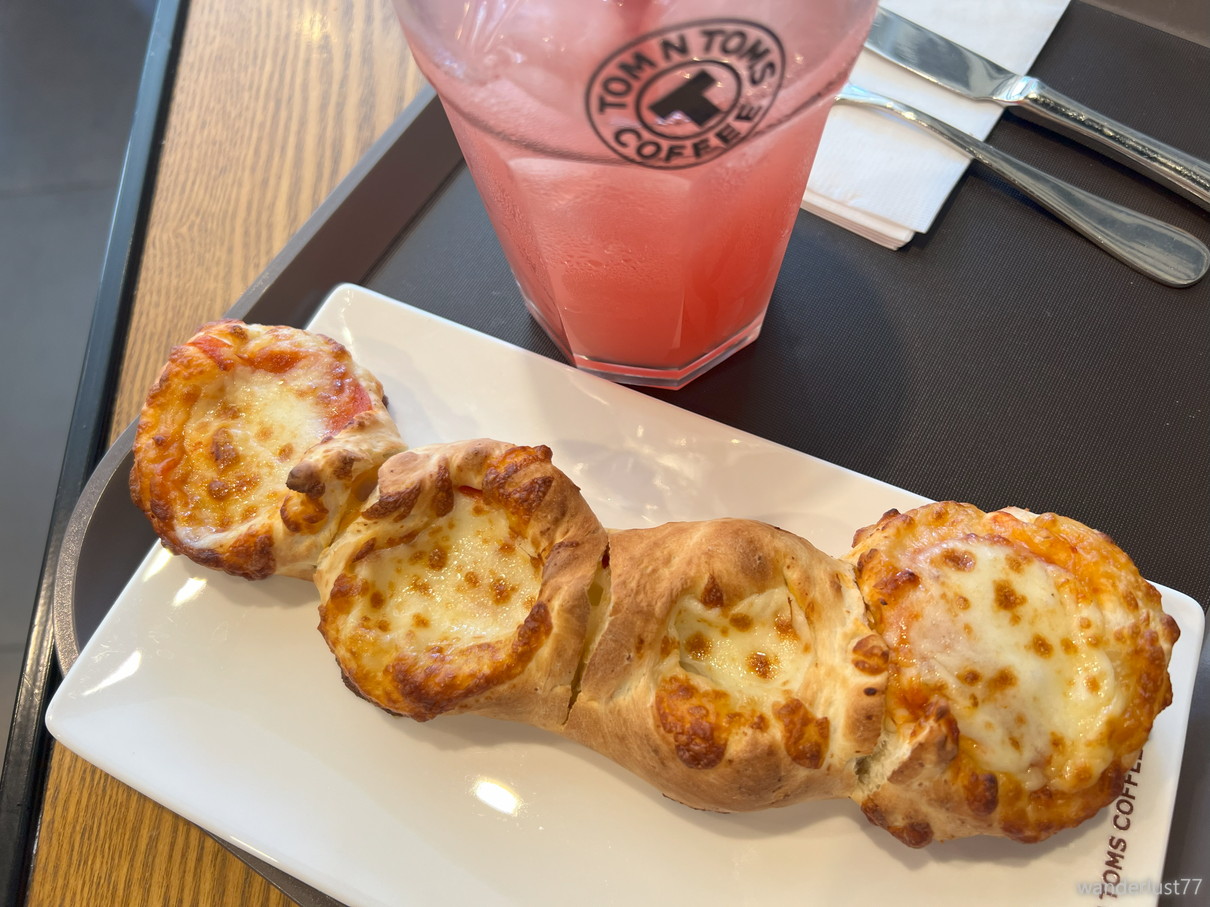 念願のタムタムのペパロニプレッツェルとスイカジュースを堪能し、