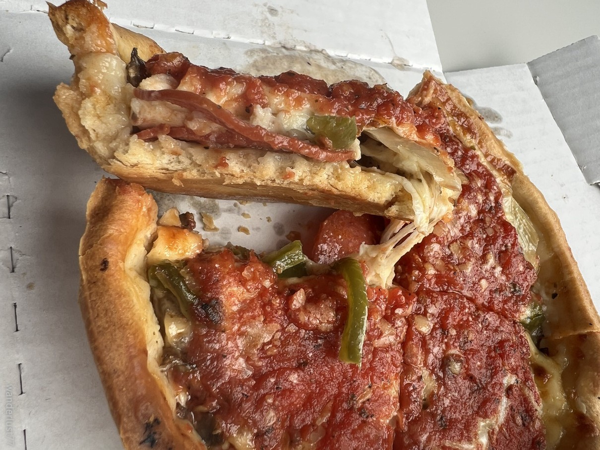 巨大なディープディッシュピザのコーナー。